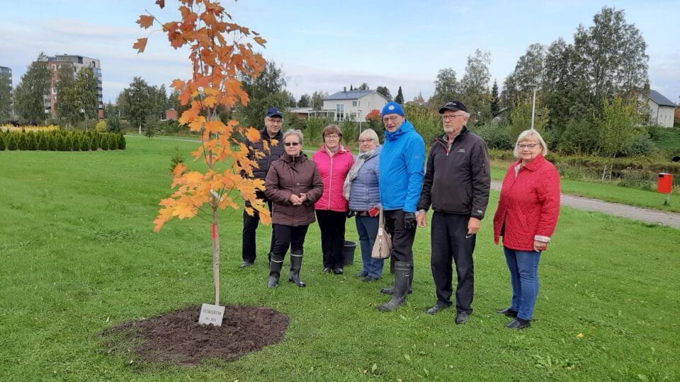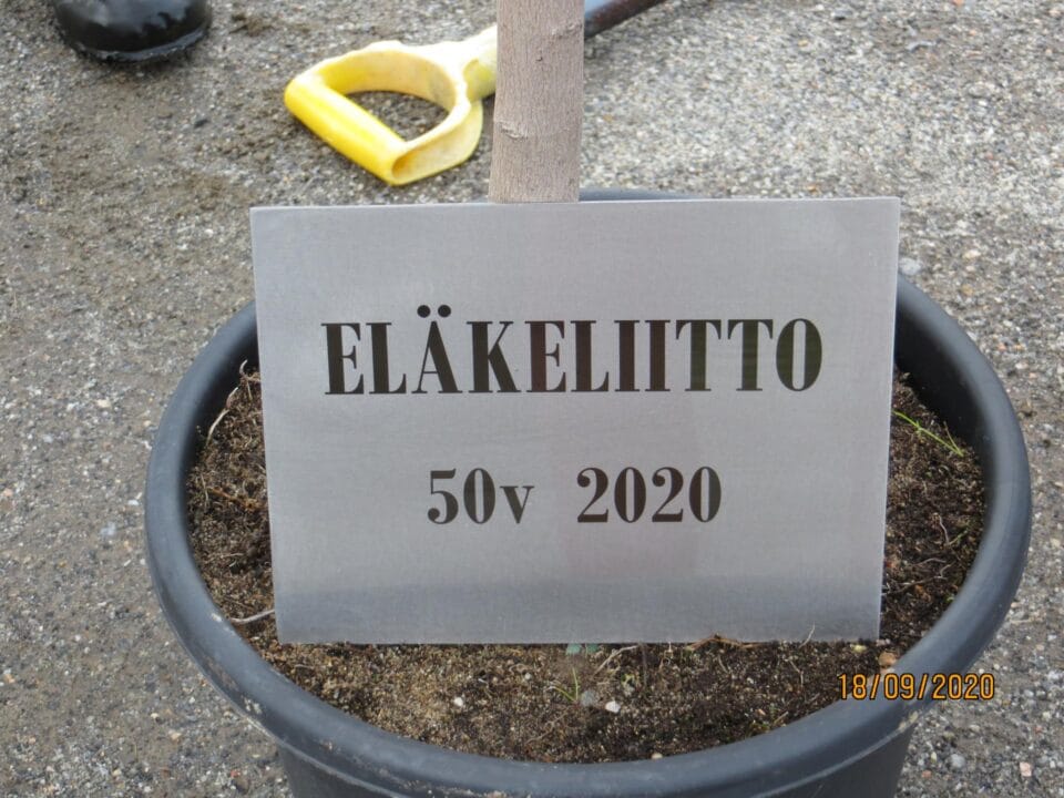 Istutettavaksi puuksi valikoitui kauniissa syysväreissään oleva vaahtera. Vaahtera on ilmeikäs puu, sen tunnistaa helposti kaikkina vuodenaikoina lehdistään. Kaupungin osoittamaan paikkaan istutettu puu saa vierelleen Eläkeliiton 50 – vuotisjuhlan kunniaksi, siitä muistuttavan kyltin.